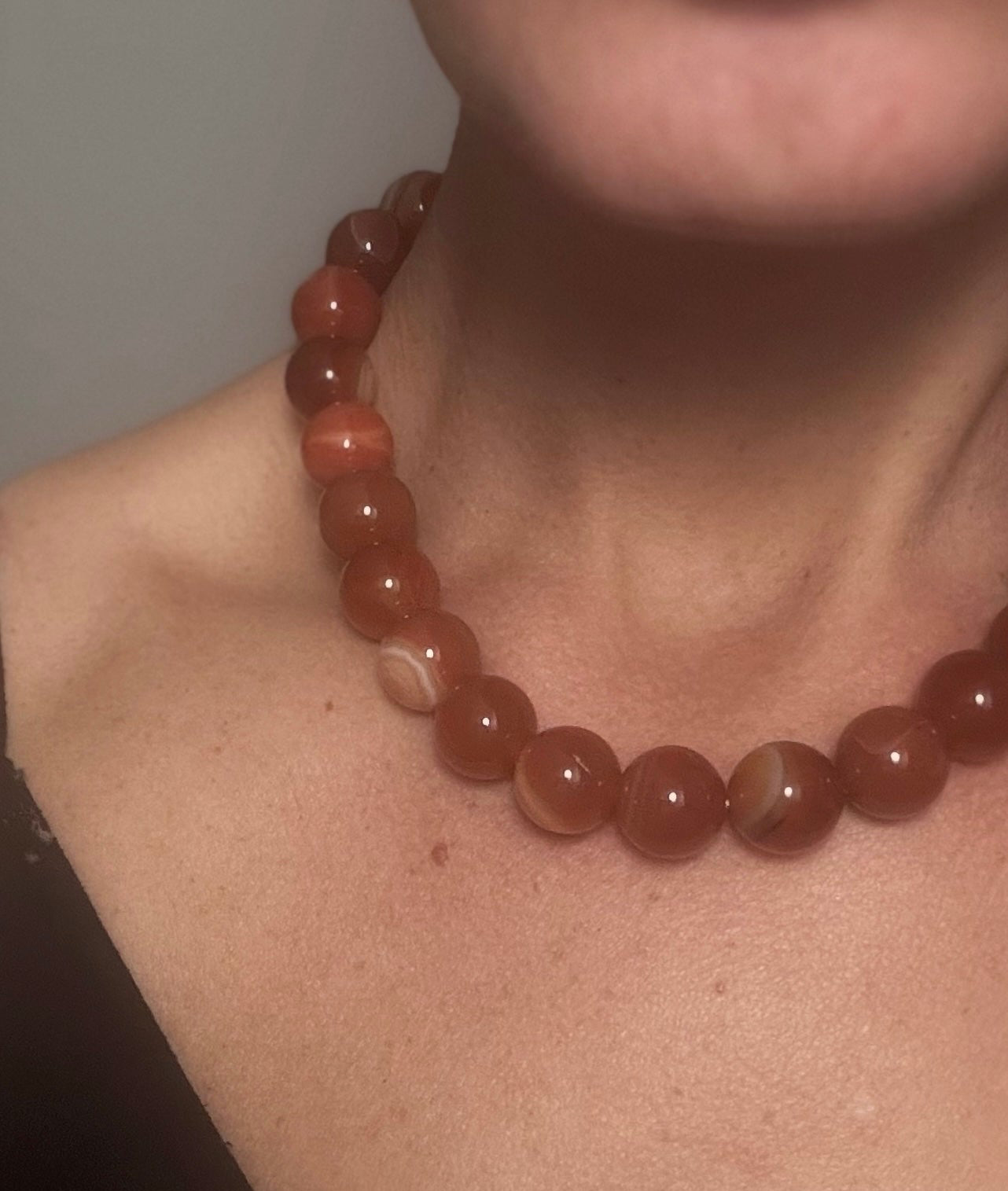 16mm Red Striped Agate Necklace with Gold Plated Brass Spring Ring Clasp